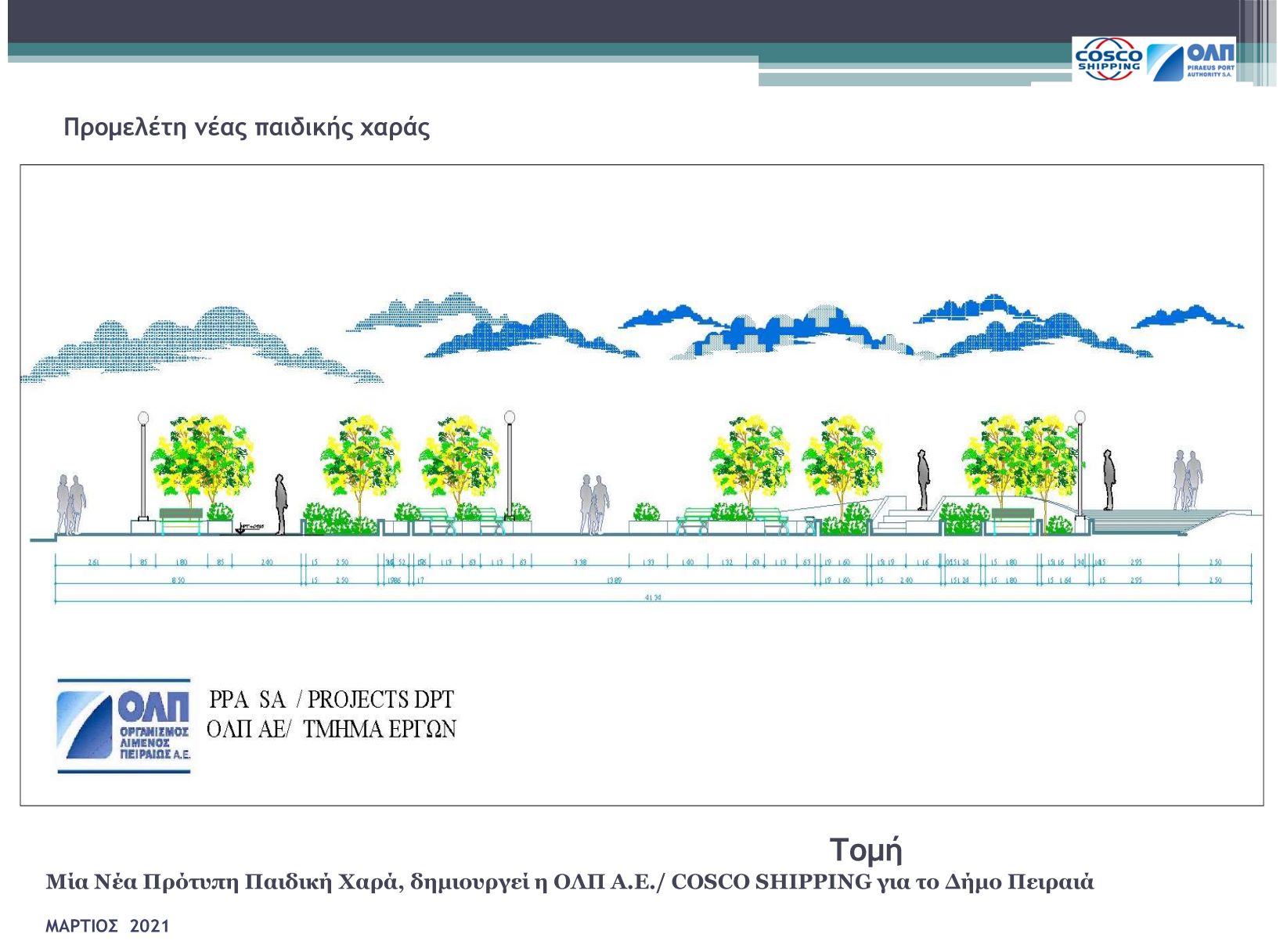 Η ΟΛΠ Α.Ε. ως μία επιχείρηση που συμμετέχει ενεργά στην τοπική κοινωνία και λαμβάνοντας σοβαρά υπόψη την Εταιρική Κοινωνική της Ευθύνη, ανακοινώνει την κατασκευή ενός νέου σύγχρονου πάρκου με μια πρότυπη παιδική χαρά και ενός ποδηλατόδρομου εντός της λιμενικής ζώνης στην περιοχή της κρουαζιέρας. Ο νέος αυτός χώρος αναψυχής θα είναι διαθέσιμος για όλους τους πολίτες να τον επισκεφθούν και να τον απολαύσουν και το κόστος κατασκευής θα καλυφθεί από τον Οργανισμό Λιμένος Πειραιά.
