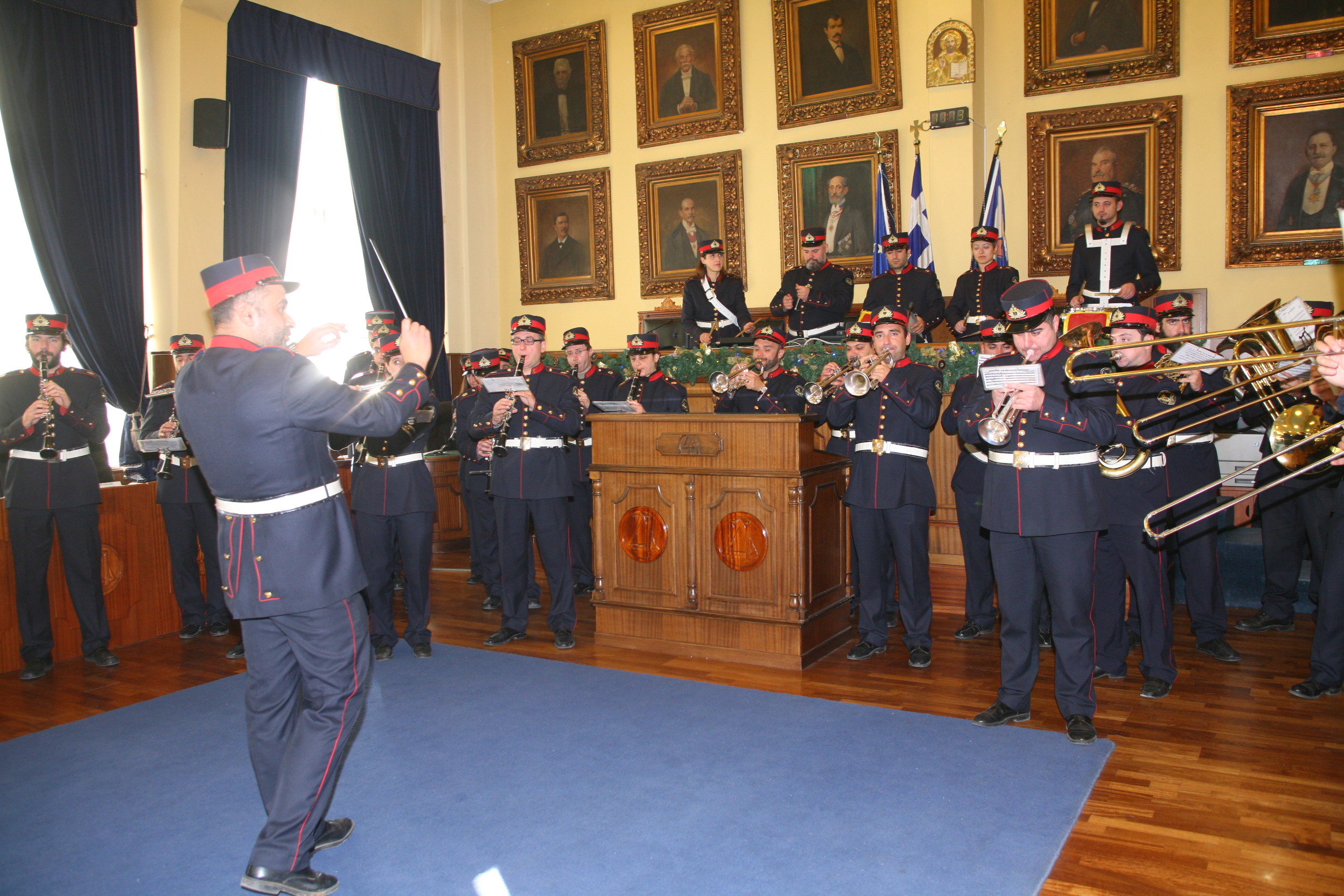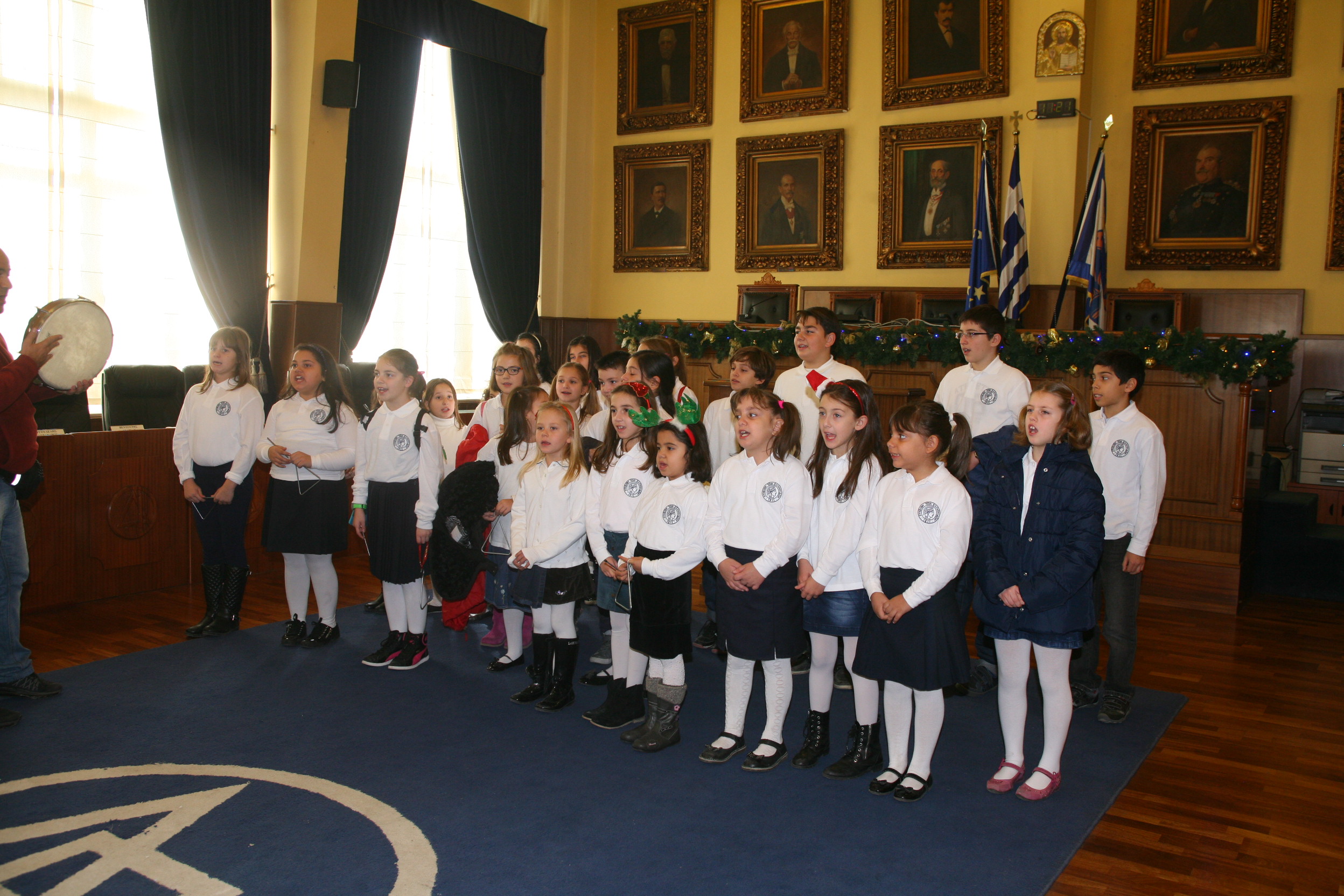 Στον Δήμαρχο Πειραιά κ. Γιάννη Μώραλη, έπαιξαν χριστουγεννιάτικες μελωδίες και είπαν τα κάλαντα η Φιλαρμονική Ορχήστρα Πνευστών του Δήμου και τα παιδιά του Λυκείου Ελληνίδων Πειραιά, στην αίθουσα του Δημοτικού Συμβουλίου.