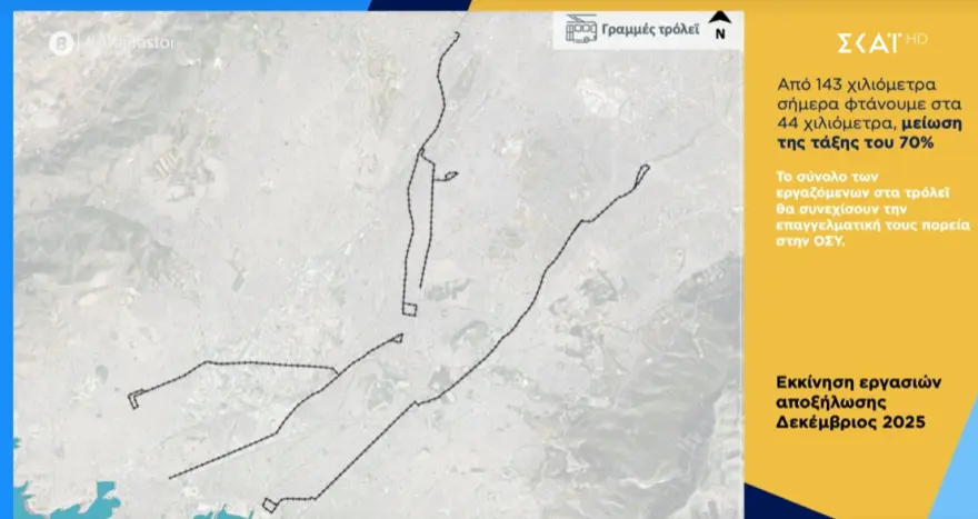 Ο κ. Κυρανάκης ανέφερε ότι πρόκειται να καταργηθεί μεγάλο τμήμα του δικτύου τρόλεϊ, το οποίο θα αντικατασταθεί πλήρως από λεωφορεία, διαβεβαιώνοντας πως δεν υπάρχει λόγος ανησυχίας για το επιβατικό κοινό. Όπως πρόσθεσε, η απομάκρυνση των καλωδίων θα ξεκινήσει άμεσα, με το κέντρο του Πειραιά να αποτελεί το πρώτο σημείο των εργασιών. «Περίπου το 70% του υφιστάμενου δικτύου θα καταργηθεί», τόνισε χαρακτηριστικά.
