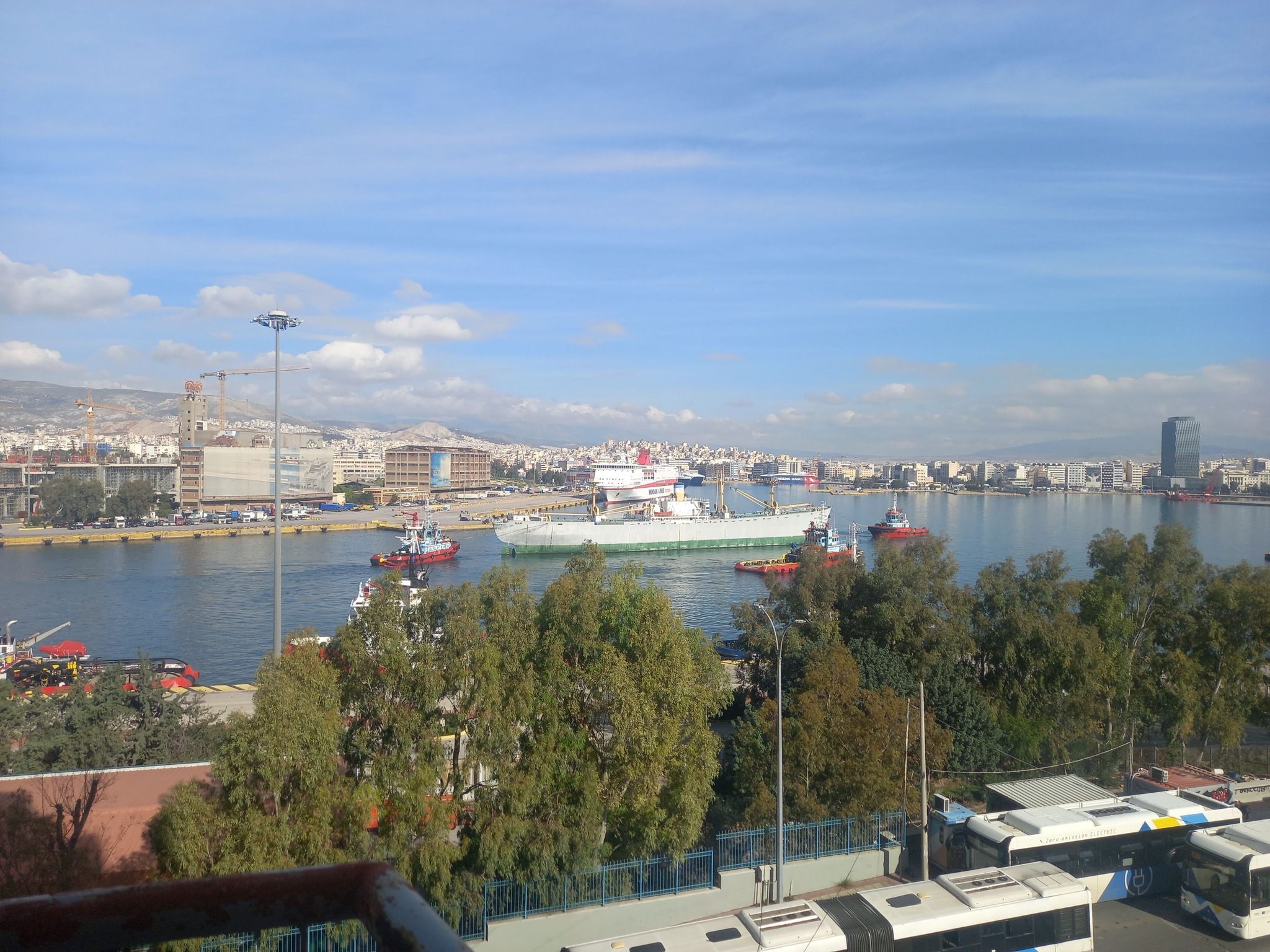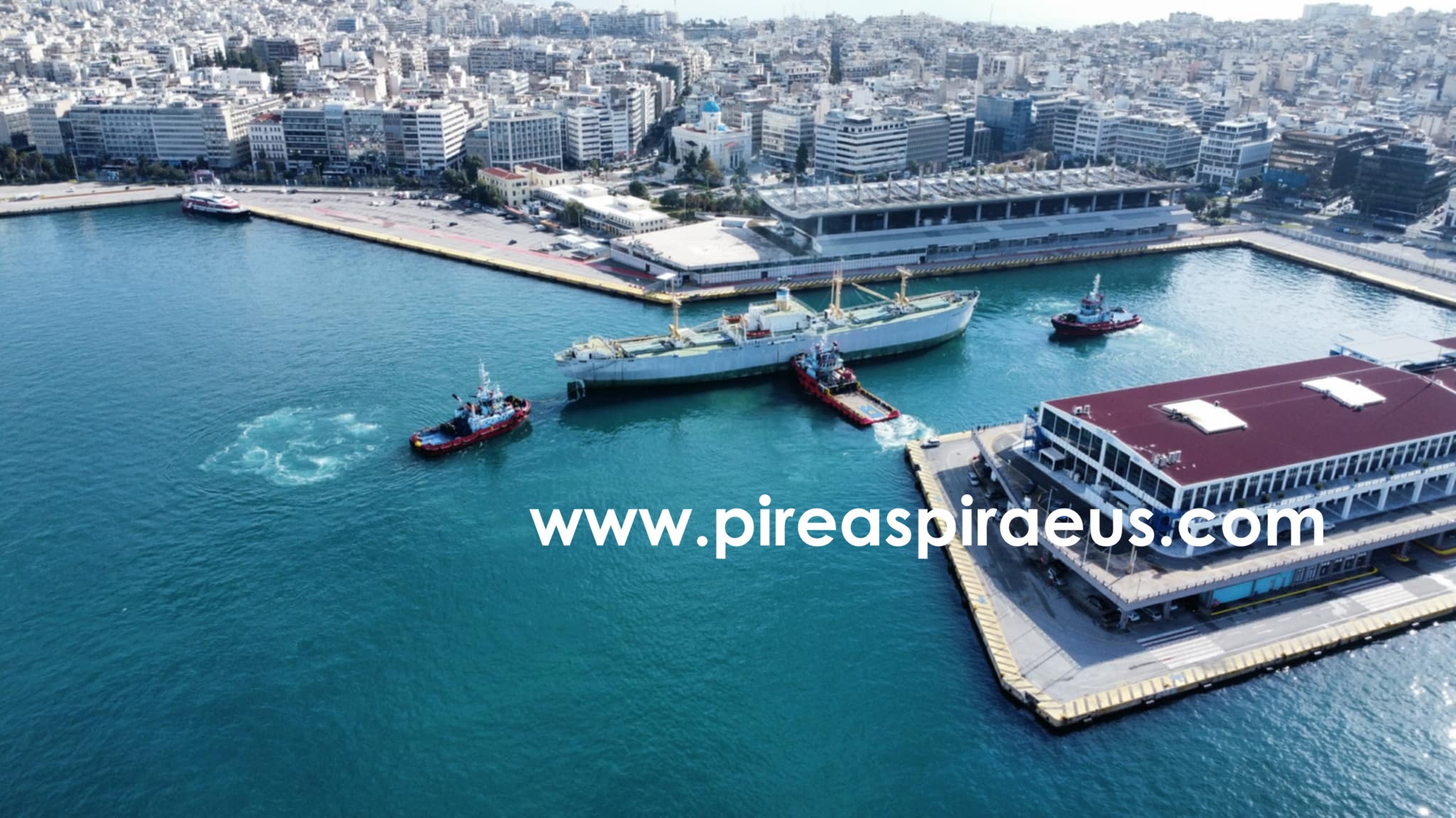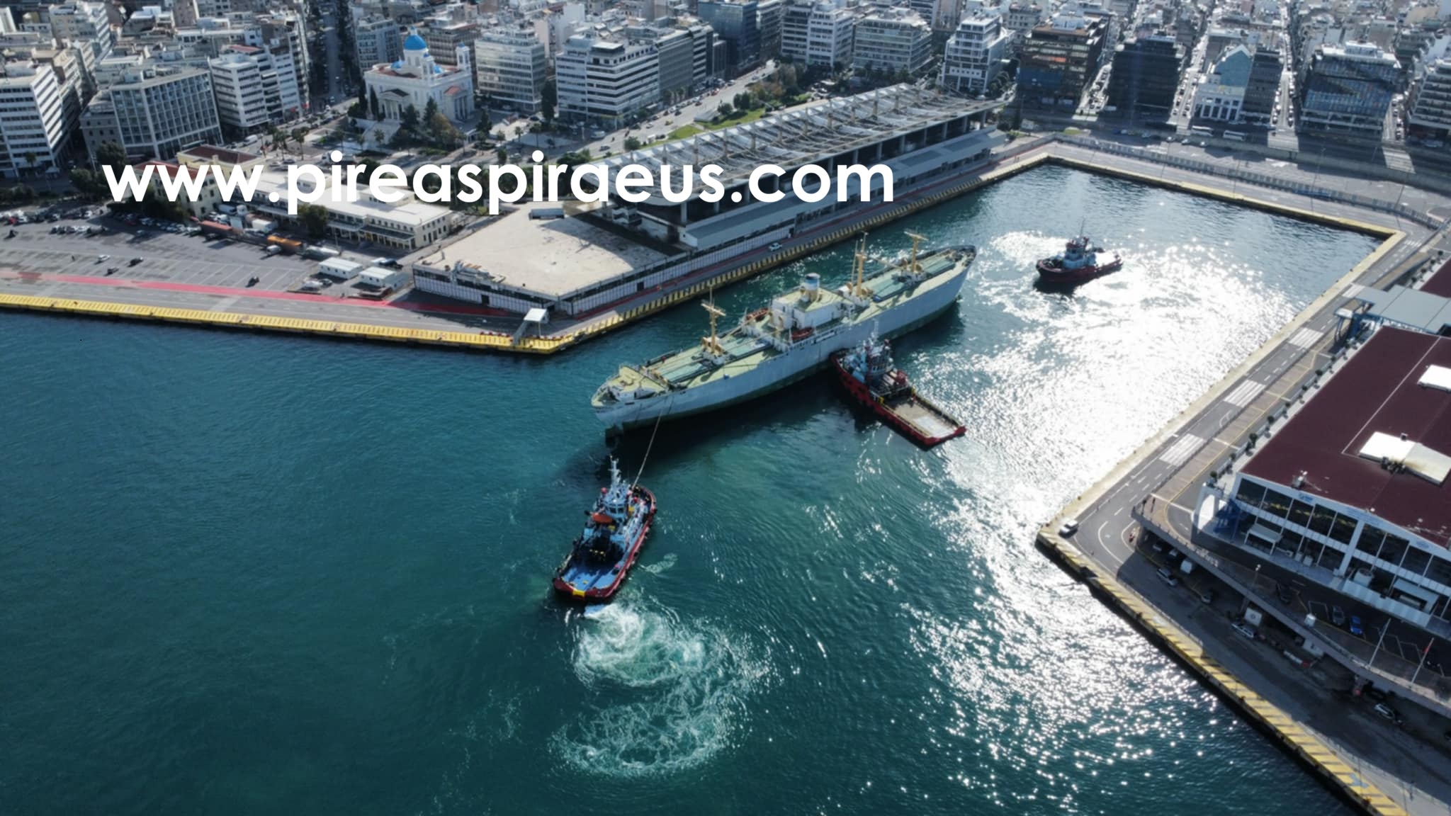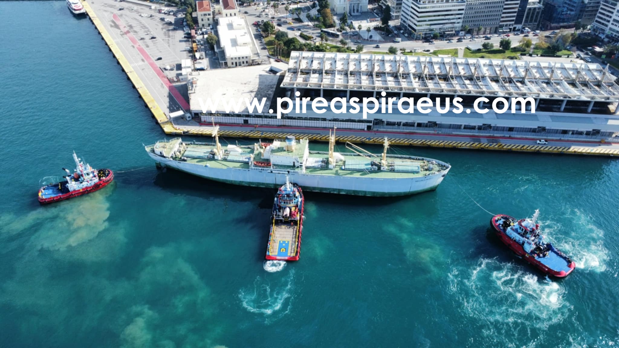 Άλλαξε νωρίτερα θέση στο λιμάνι του Πειραιά το πλοίο-μουσείο HELLAS LIBERTY , μετακινούμενο απο τρία ρυμουλκά της MegaTugs .