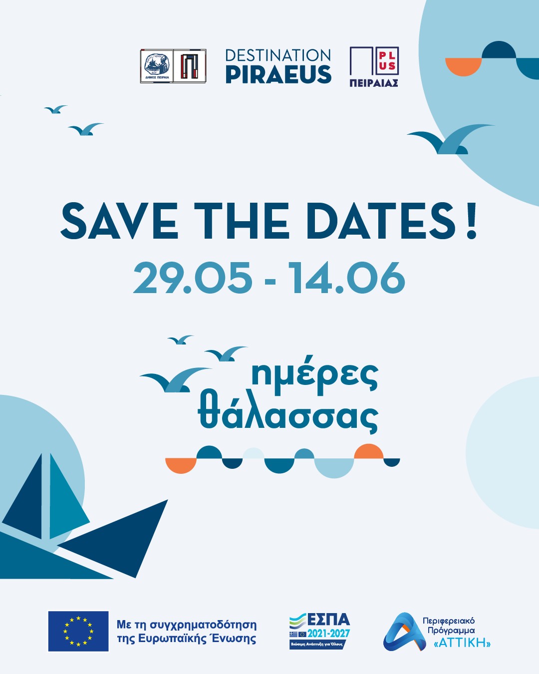 Οι Ημέρες Θάλασσας 2026 διοργανώνονται στο πλαίσιο της Πράξης «Τουριστική Προβολή Δήμου Πειραιά» του Προγράμματος «ΑΤΤΙΚΗ 2021-2027», από τον Αναπτυξιακό Οργανισμό «ΠΕΙΡΑΙΑΣ ΣΥΝ ΜΟΝΟΠΡΟΣΩΠΗ Α.Ε.», σε συνεργασία με τη Διεύθυνση Εξωστρέφειας, Ευρωπαϊκών Προγραμμάτων και Τουρισμού.