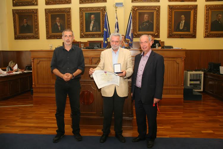 Είχα ενημερωθεί γι αυτήν την ευγενική πρόθεσή σας να μου αποδώσετε αυτήν την εξαιρετική τιμή. Να μου απονείμετε μία τιμητική πλακέτα. Το Μετάλλιο της πόλης που μόλις άκουσα ότι προτίθεσθε να μου απονείμετε, οφείλω να σας πω ότι μου «κόβει λίγο τα πόδια» . Είναι πολύ βαρύ, θέλω να το σηκώσω, θα το σηκώσω γιατί και στο συμβολισμό του και στην ουσία του είναι μια εξαιρετική τιμή , που όχι μόνο με συγκινεί ιδιαίτερα, αλλά μου δίνει ακόμη μεγαλύτερη ευθύνη για τη συνέχεια.
