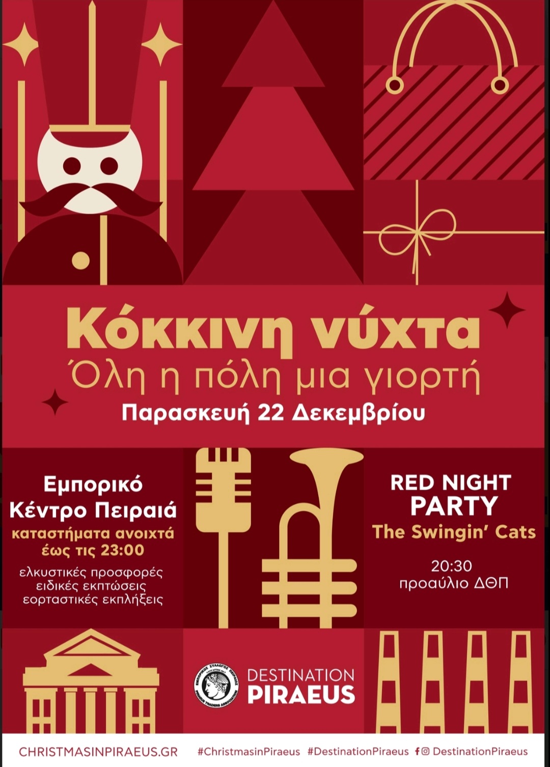 Την Παρασκευή 22 Δεκεμβρίου η Αγορά του Πειραιά ντύνεται στα κόκκινα και γίνεται όλη η πόλη μας για μεγάλη γιορτή.