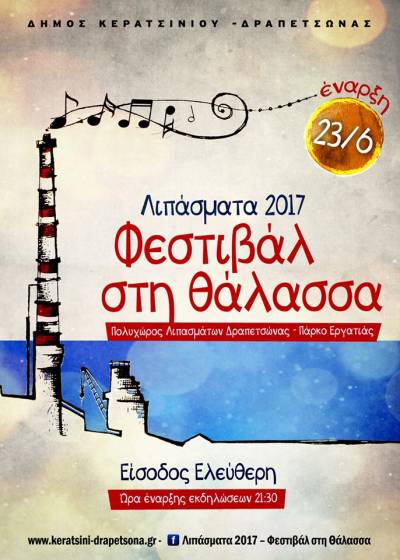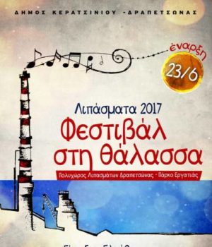 Ένα νέο πολιτιστικό φεστιβάλ ξεκινά φέτος το καλοκαίρι στον εμβληματικό χώρο των πρώην Λιπασμάτων του Δήμου Κερατσινίου – Δραπετσώνας. Το παλιό εργοστάσιο Λιπασμάτων, με τις διατηρητέες εγκαταστάσεις και την χαρακτηριστική πανύψηλη καμινάδα αλλά και τη θάλασσα που φτάνει σχεδόν ως την σκηνή, αποτελούν το φυσικό σκηνικό του χώρου, που μεταμορφώθηκε σε ένα πολυχώρο εκδηλώσεων, το Πάρκο Εργατιάς.