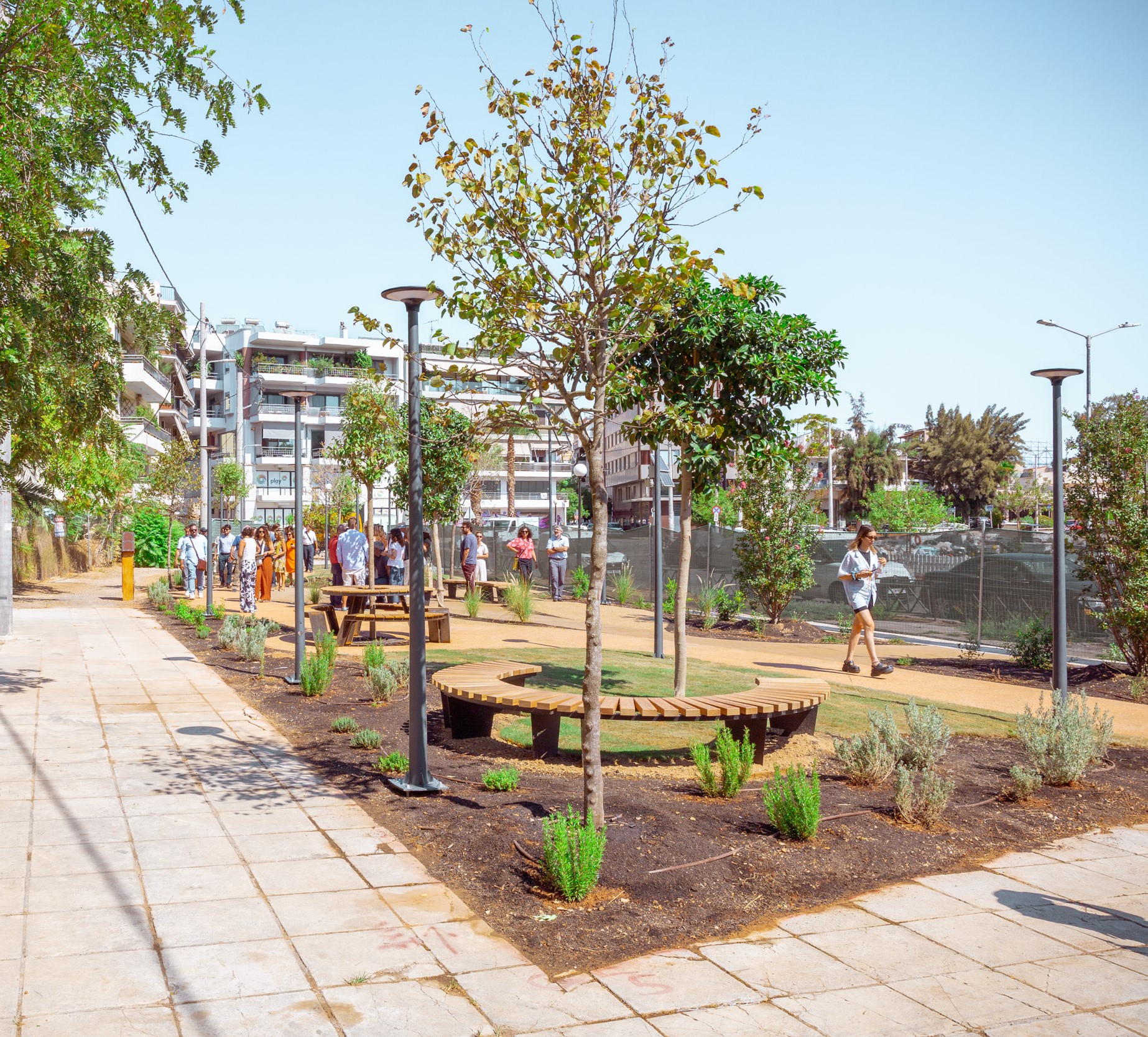 · Νησίδες πρασίνου με καθιστικά, φωτοβολταϊκή αυτονομία και στοιχεία φύτευσης στο Μικρολίμανο, από ανακυκλωμένα δίχτυα ψαράδων που έχουν συλλεχθεί από τις ελληνικές θάλασσες.
