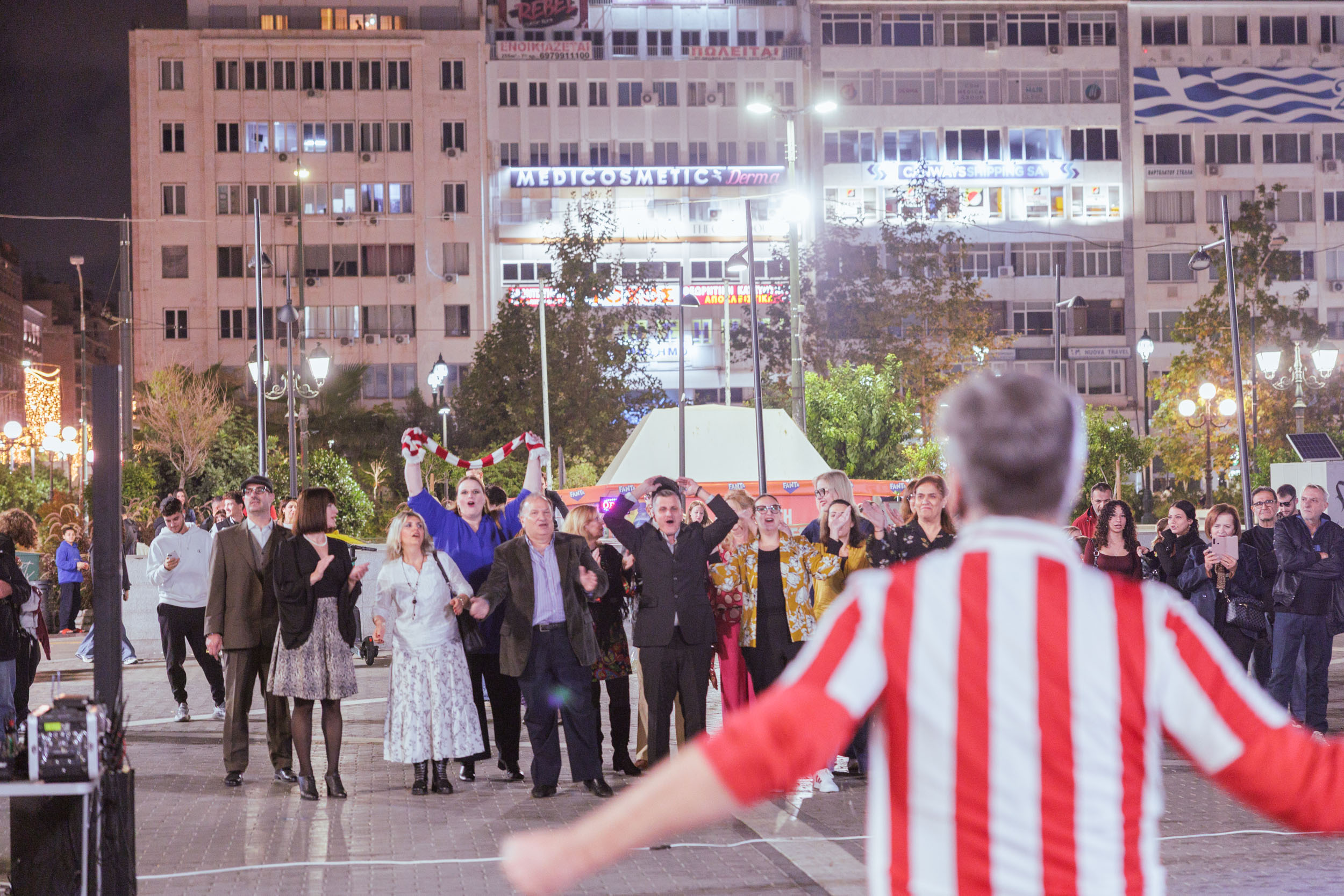 Στην πλατεία Κοραή, ο Σταύρος Καραγιάννης και ο Γιάννης Μπουραζάνας, παρουσίασαν την «Φωτογραφία», σε κείμενο του Βασίλη Κατσικονούρη με άρωμα Ολυμπιακού. Ξεχωριστή στιγμή της δράσης, στην πλατεία Κοραή, ήταν όταν παλαίμαχοι ποδοσφαιριστές του Ολυμπιακού μίλησαν για τις εμπειρίες και τις αναμνήσεις τους από τις αλάνες του Πειραιά.