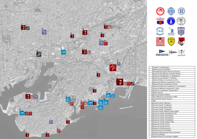 Με τίτλο «Αθλητισμός για όλους» ο Νίκος Μπελαβίλας και η ομάδα του καταγράψανε όλες τις εγκαταστάσεις και τους συλλόγους της πόλης. «Τους χώρους τους βλέπετε στον χάρτη που έγινε στα πλαίσια αυτής της έρευνας. Ενδεικτικά βλέπετε τις σημαιούλες των 15 πιο παλαιών και σημαντικών σωματείων. Στείλτε μας και τις υπόλοιπες αν θέλετε» σημειώνει στην δημοσίευση του.