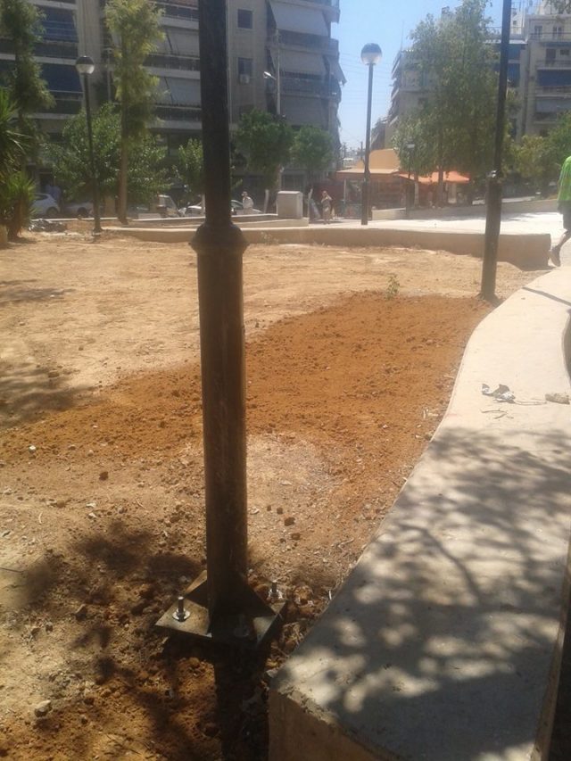 Ταυτόχρονα (ανα)κατασκευάζεται η παιδική χαρά και πιθανότατα να υπάρχει χώρος για εκτόνωση δεσποζούμενων ζώων.