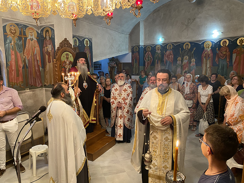 Απευθυνόμενος στους πιστούς που συνέρρεαν για να τιμήσουν την μνήμη της Αγίας κατά την διάρκεια του Μεγάλου Εσπερινού, ο Σεβασμιώτατος έκανε καταρχήν ιδιαίτερη αναφορά στους κτήτορες του Παρεκκλησίου, τον μακαριστό π. Μαρίνο Γεωργακόπουλο και τους αειμνήστους αυταδέλφους Ιωάννα και Νικόλαο Τζώρτζη.