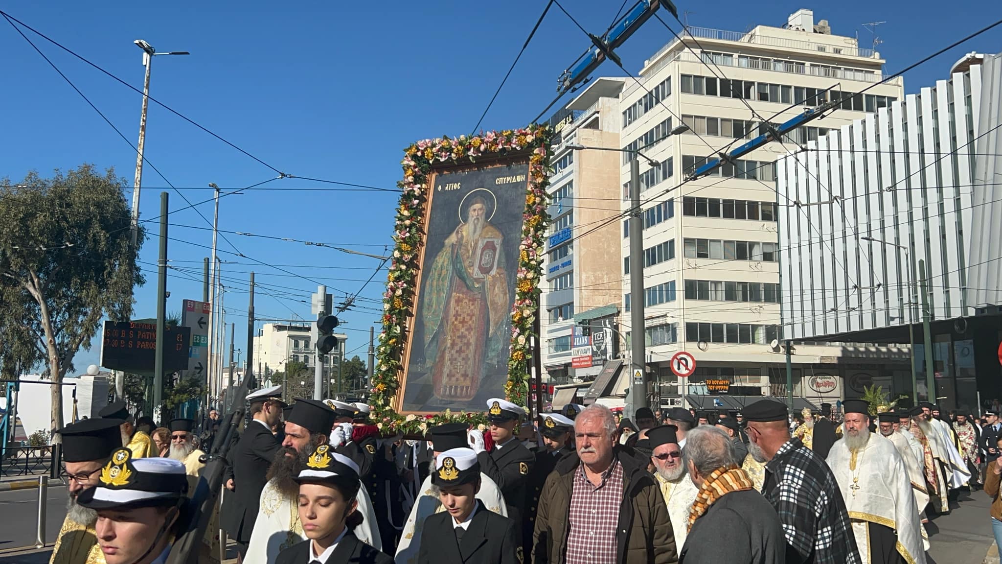 Τέλεστηκε υπο την παρουσία αρκετών Πειραιωτών η λιτανεία της Ιερής Εικόνας του Αγίου Σπυρίδωνα,Πολίουχου Αγίου του Πειραιά.