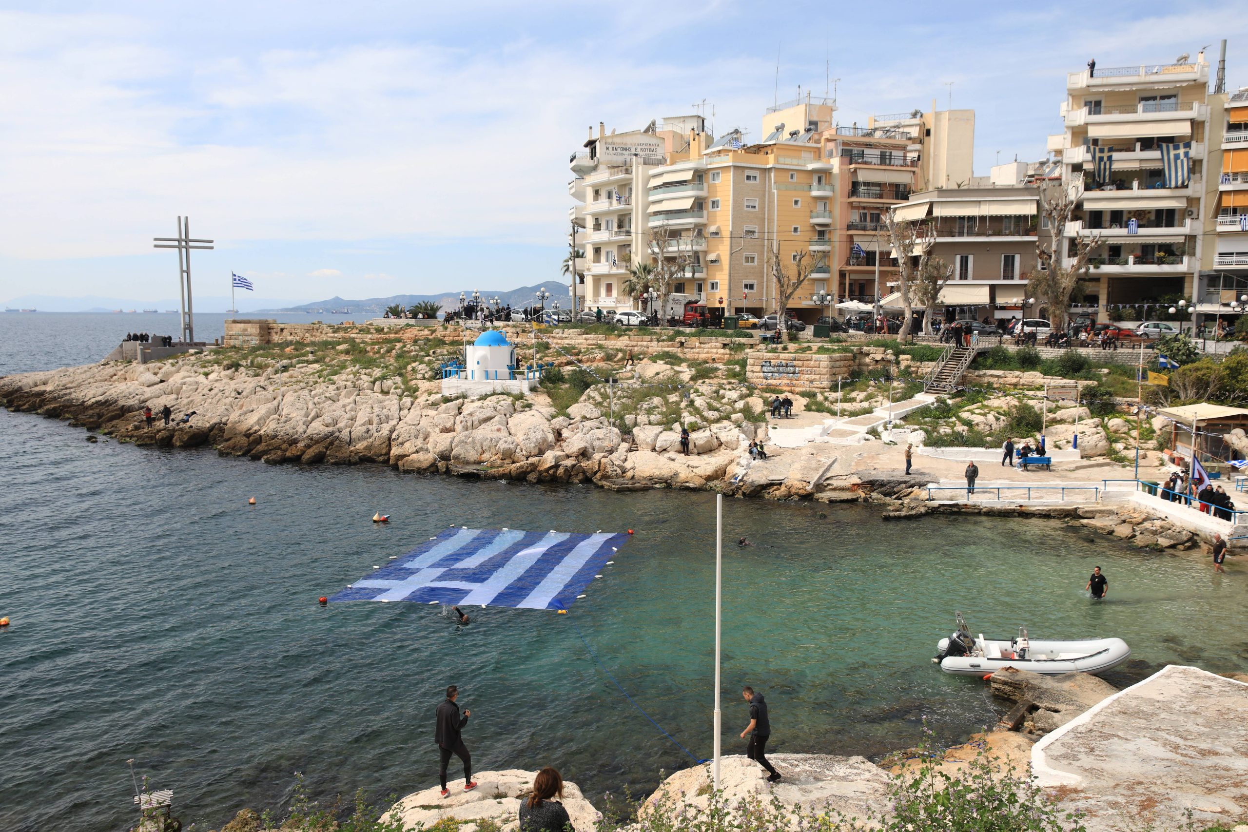 Αισθήματα εθνικής υπερηφάνειας προκάλεσε η θέα της Γαλανόλευκης στην επιφάνεια της θάλασσας, στον Όρμο της Αφροδίτης στην Πειραϊκή, την οποία τοποθέτησε σήμερα, για ακόμη μια χρονιά, ο Δήμος Πειραιά, τιμώντας με αυτό τον τρόπο τις ηρωικές μάχες των Ελλήνων στη θάλασσα.