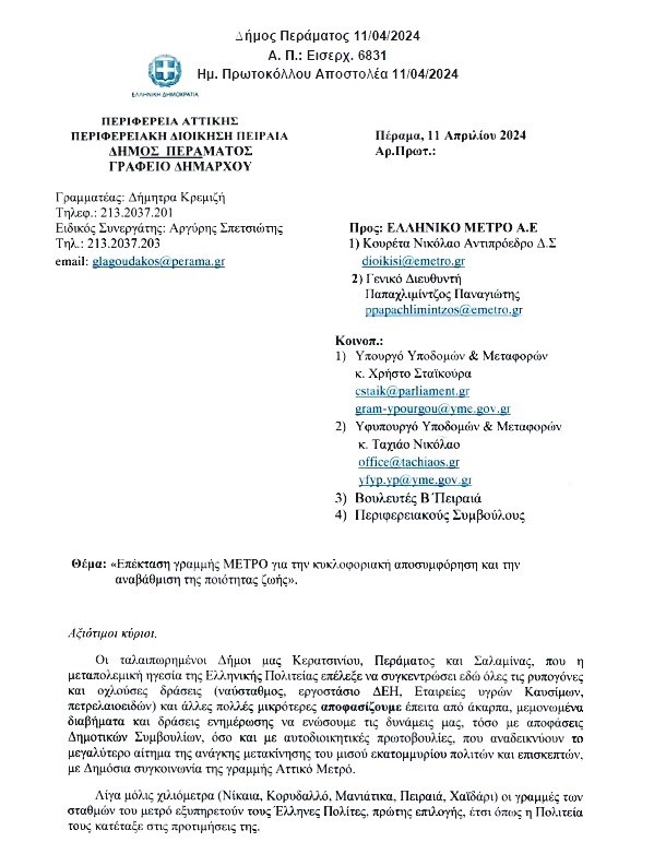 Σήμερα στο γραφείο του Δημάρχου Κερατσινίου-Δραπετσώνας πραγματοποιήθηκε σύσκεψη με θέμα την επέκταση του μετρό και στις δικές μας γειτονιές.