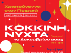 Ο Πειραιάς «ντύνεται» στα κόκκινα και σε συνεργασία με τον Εμπορικό Σύλλογο της πόλης, προσκαλεί κατοίκους και επισκέπτες να περιηγηθούν στο εμπορικό κέντρο, σε μια μεγάλη χριστουγεννιάτικη γιορτή με πολλές εκπλήξεις!