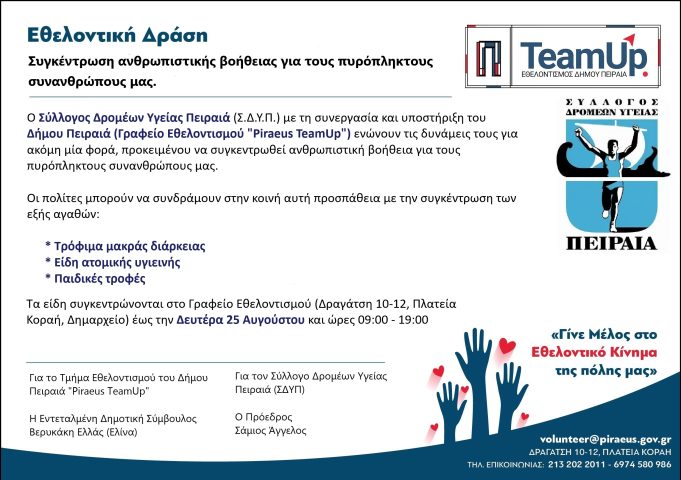 Ο Σύλλογος Δρομέων Υγείας Πειραιά με τη συνεργασία και την υποστήριξη του Γραφείου Εθελοντισμού του Δήμου Πειραιά «Piraeus TeamUp» συγκεντρώνουν τρόφιμα και είδη πρώτης...