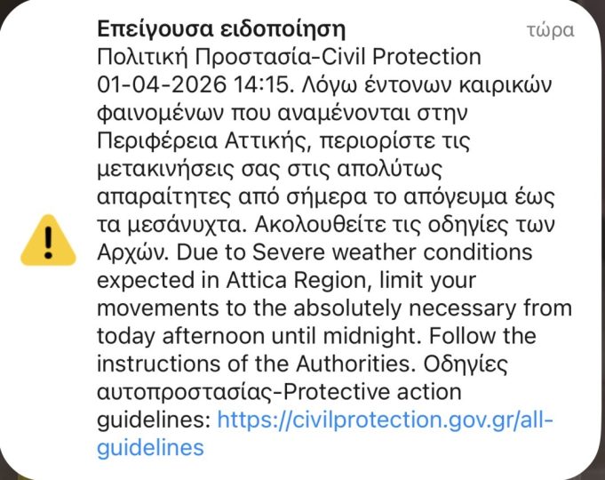 Σε κατάσταση αυξημένης ετοιμότητας βρίσκεται η Περιφέρεια Αττικής, μετά την επείγουσα ειδοποίηση της Πολιτικής Προστασίας για την εκδήλωση έντονων καιρικών φαινομένων. Σύμφωνα με το...