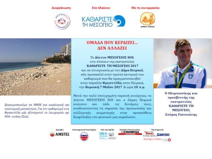 Για 22η χρονιά ξεκινά και φέτος η εκστρατεία εθελοντικών καθαρισμών ακτών, βυθού και φυσικών περιοχών ΚΑΘΑΡΙΣΤΕ ΤΗ ΜΕΣΟΓΕΙΟ, που διοργανώνει το Δίκτυο ΜΕΣΟΓΕΙΟΣ SOS...