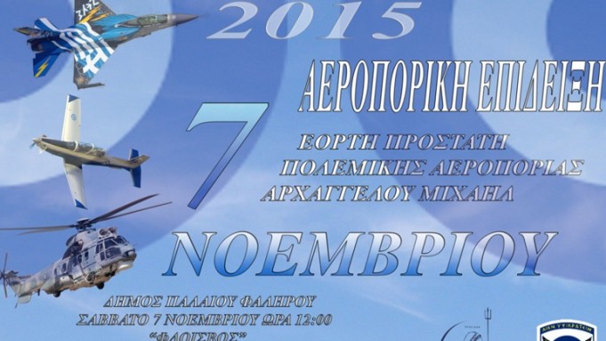 Στο πλαίσιο των εορτασμών για τον προστάτη της Πολεμικής Αεροπορίας Αρχάγγελο Μιχαήλ, στις 7 Νοεμβρίου θα πραγματοποιηθεί αεροπορική επίδειξη στην περιοχή του Φλοίσβου, στο...