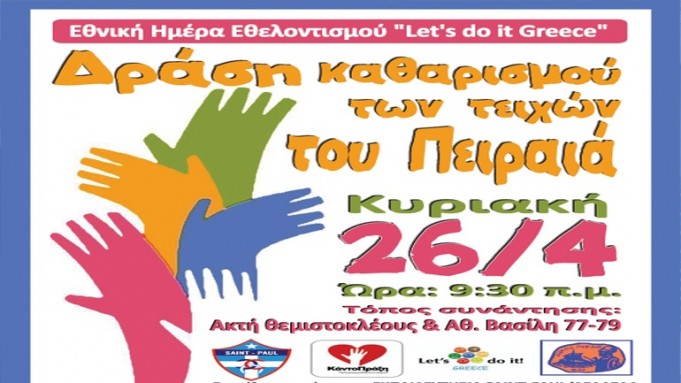 Στο πλαίσιο της Εθνικής ημέρας Εθελοντισμού "Let's do it Greece" τα εκπαιδευτήρια “Saint-Paul” και “Δελασάλ”, σε συνεργασία με τον Δήμο Πειραιά, οργανώνουν τη «Δράση καθαρισμού...