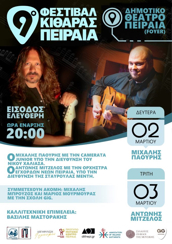 Το 9ο Φεστιβάλ Κιθάρας Πειραιά ανοίγει τις πύλες του, στο Φουαγιέ του Δημοτικού Θεάτρου της πόλης, τη Δευτέρα 2 και την Τρίτη 3 Μαρτίου...