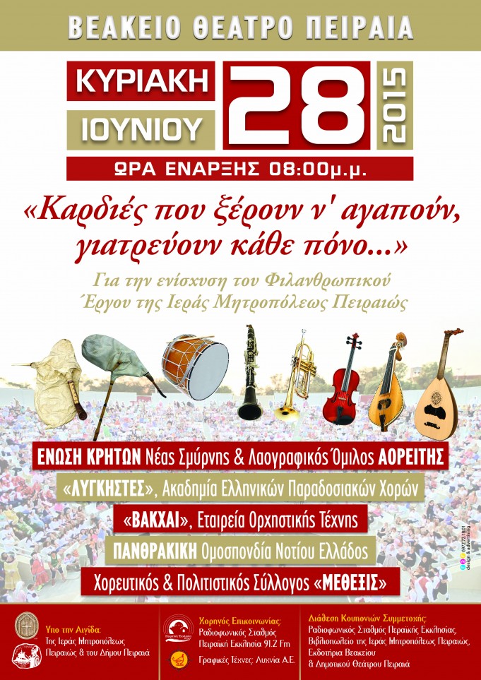 Την Κυριακή 28 Ιουνίου στις 8 το βράδυ, στο Βεάκειο Θέατρο του Πειραιά, θα πραγματοποιηθεί μουσικοχορευτική παράσταση με άρωμα Ελλάδος, με τίτλο «Καρδιές που...