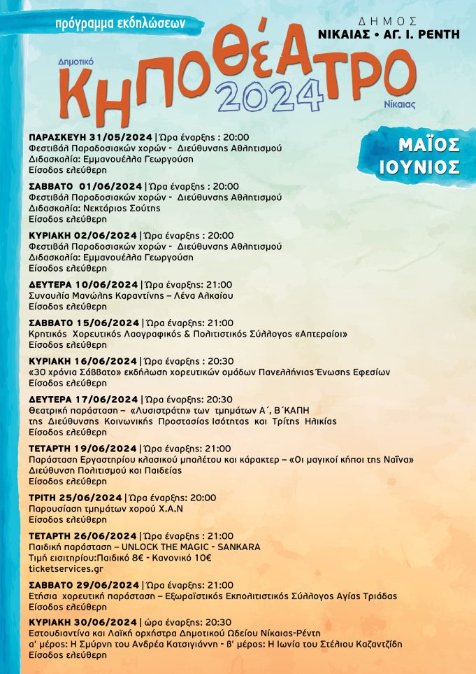 Πρόγραμμα εκδηλώσεων και συναυλιών στο ΚΑΤΡΑΚΕΙΟ ΘΕΑΤΡΟ ΝΙΚΑΙΑΣ