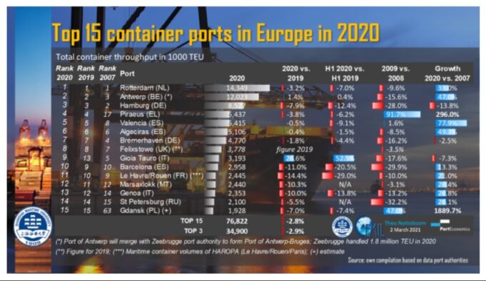Ο Οργανισμός Λιμένος Πειραιά ανακοινώνει ότι το 2020 και οι τρεις προβλήτες εμπορευματοκιβωτίων διακίνησαν συνολικά 5.437.477 εκατ. TEU διατηρώντας τον Πειραιά στην 4η θέση...