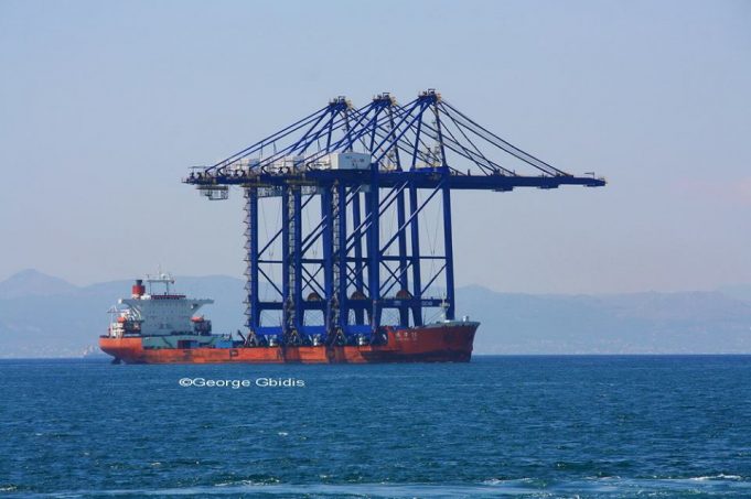 Στο terminal της COSCO έφθασαν πριν απο λίγη ώρα 3 νέες γερανογέφυρες super post panamax , με το heavy lift πλοίο Zhen Hua 26...