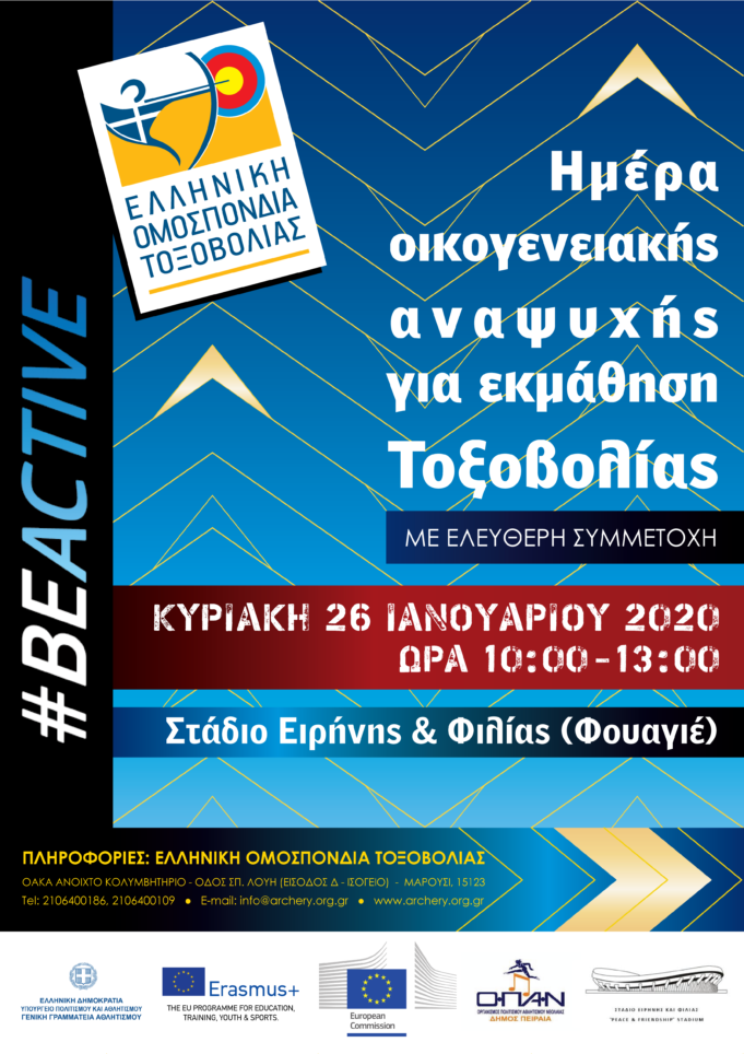 Η Ελληνική Ομοσπονδία Τοξοβολίας, στο πλαίσιο της ανάπτυξης και προώθησης του αθλήματος, διοργανώνει την Κυριακή 26 Ιανουαρίου στις 10:00-13:00, στο Στάδιο Ειρήνης & Φιλίας,...