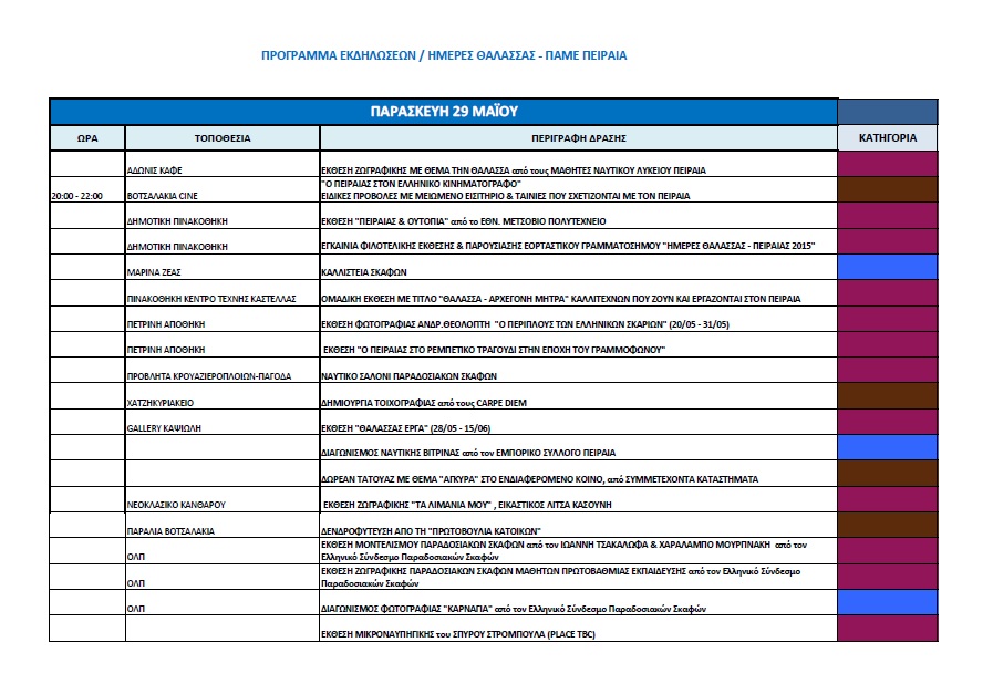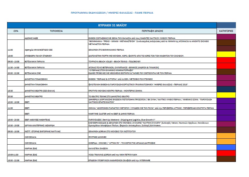 Πρόγραμμα Εκδηλώσεων “Ευρωπαϊκής Ημέρας Θάλασσας Πειραιάς 2015”