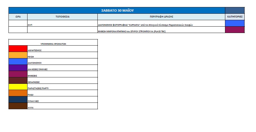 Έχουμε και λέμε,το πρόγραμμα που έχει ανέβει στον επίσημο ιστότοπο ανά ημέρα έχει ως εξής: