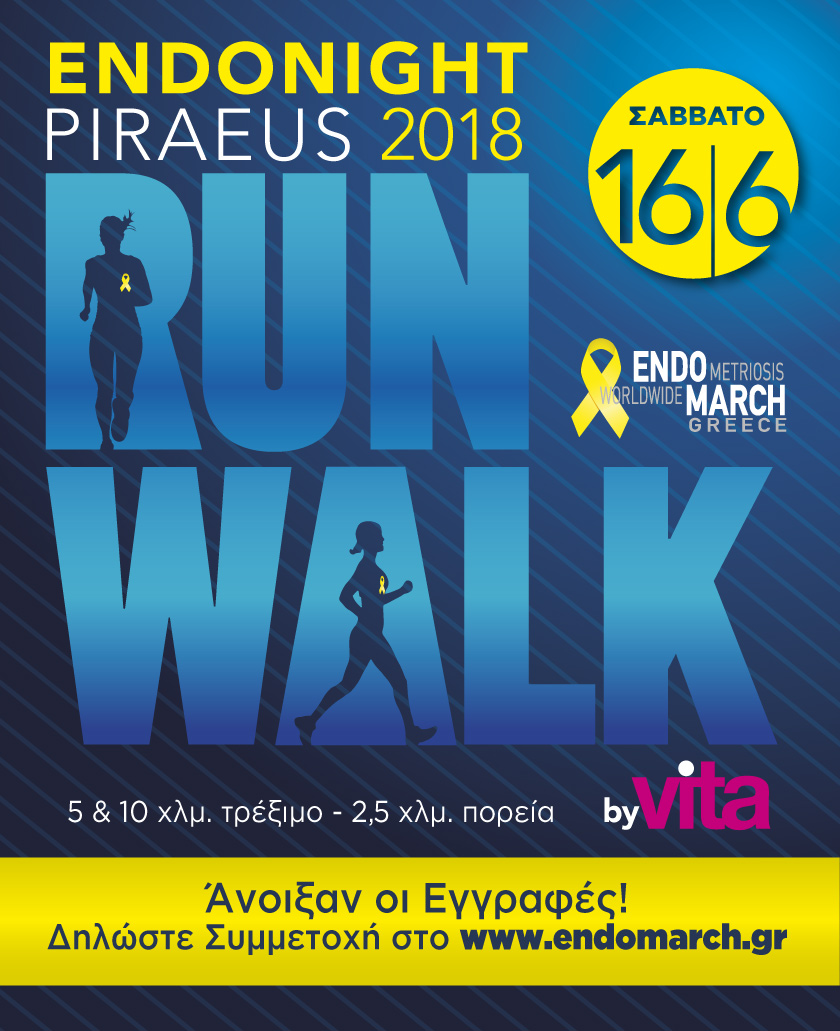 Το Σάββατο 16 Ιουνίου, με την στήριξη του ΔΗΜΟΥ ΠΕΙΡΑΙΑ, τρέχουμε για 2η συνεχή χρονιά για καλό σκοπό! Συμμετέχουμε στο “Piraeus Night Run/Walk by VITA” για την γυναικεία υγεία, για την ενημέρωση και την ευαισθητοποίηση για την Ενδομητρίωση – τη χρόνια και δυστυχώς «άγνωστη» αυτή γυναικεία πάθηση που ταλαιπωρεί χιλιάδες γυναίκες παγκοσμίως!