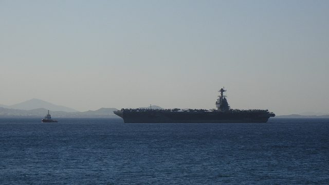 Στον Φαληρικό Ορμο αγκυρβόλησε το πρωί της Πέμπτης 27 Ιουλιου το πυρηνοκίνητο αμερικανικό αεροπλανοφόρο USS Gerald R.Ford CNV-78, το οποιο ειναι το πιο συγχρονο και μεγαλυτερο του Αμερικανικου Ναυτικού.Είναι μήκους 337 μέτρων, ύψους 76μ., ενώ διαθέτει 25 καταστρώματα και μπορεί να φιλοξενήσει συνολικό πλήρωμα 4539 ατόμων.Μπορει να αναπτυξει ταχυτητα εως και 30 κόμβους.