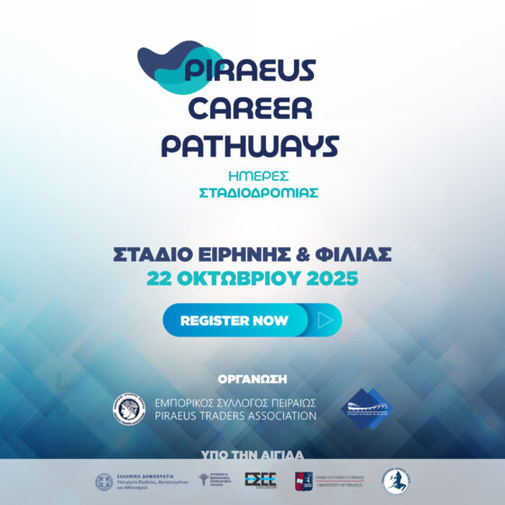Ο Εμπορικός Σύλλογος Πειραιώς, διοργανώνει για πρώτη φορά «ΗΜΕΡΕΣ ΣΤΑΔΙΟΔΡΟΜΙΑΣ- PIRAEUS CAREER PATHWAYS» την Τετάρτη 22 Οκτωβρίου με συνδιοργανωτή το Σ.Ε.Φ., και με την υποστήριξη Ακαδημαϊκών Ιδρυμάτων (ΠΑΠΕΙ, ΠΑΔΑ), θεσμικών και επιχειρηματικών φορέων.
