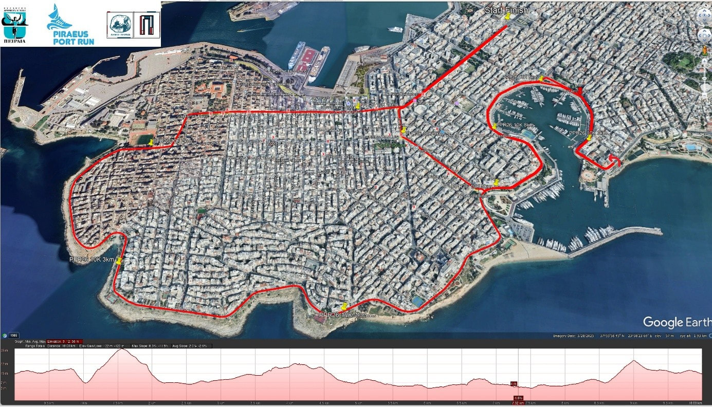 Σημείο εκκίνησης και τερματισμού όλων των αγώνων είναι η Πλατεία Κοραή, μπροστά από το εμβληματικό Δημοτικό Θέατρο Πειραιά, στο ιστορικό κέντρο της πόλης.