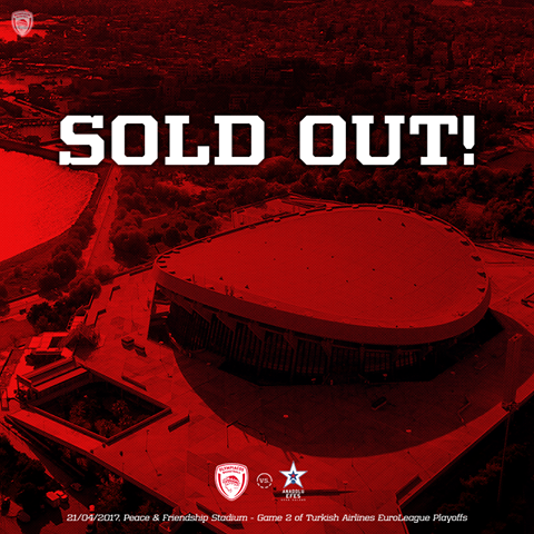 Η ΚΑΕ Ολυμπιακός  ενημέρωσε νωρίτερα με ανακοίνωση της τους φιλάθλους της ομάδας ότι τα εισιτήρια για το 2ο παιχνίδι των playoffs/προημιτελικών της Ευρωλίγας (Παρασκευή 21/4 στις 21:00) κόντρα στο Εφές, εξαντλήθηκαν! Συνεπώς βρέθηκε ο 6ος..και συμαντικότερος παίκτης στο παρκέ του ΣΕΦ